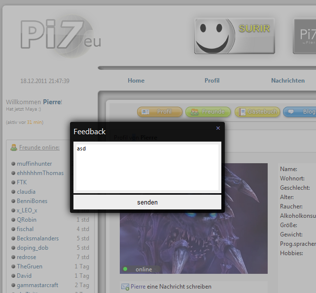 Warning: Use of undefined constant Groesse - assumed 'Groesse' (this will throw an Error in a future version of PHP) in /var/www/html/profil/dateien/uebersicht.php on line 145 Dateien von Pierre - Pi7.eu!